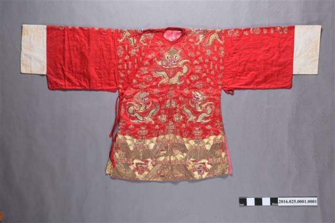 大紅綢地盤金繡新娘禮服