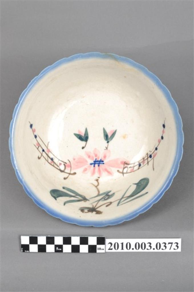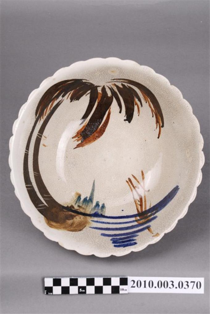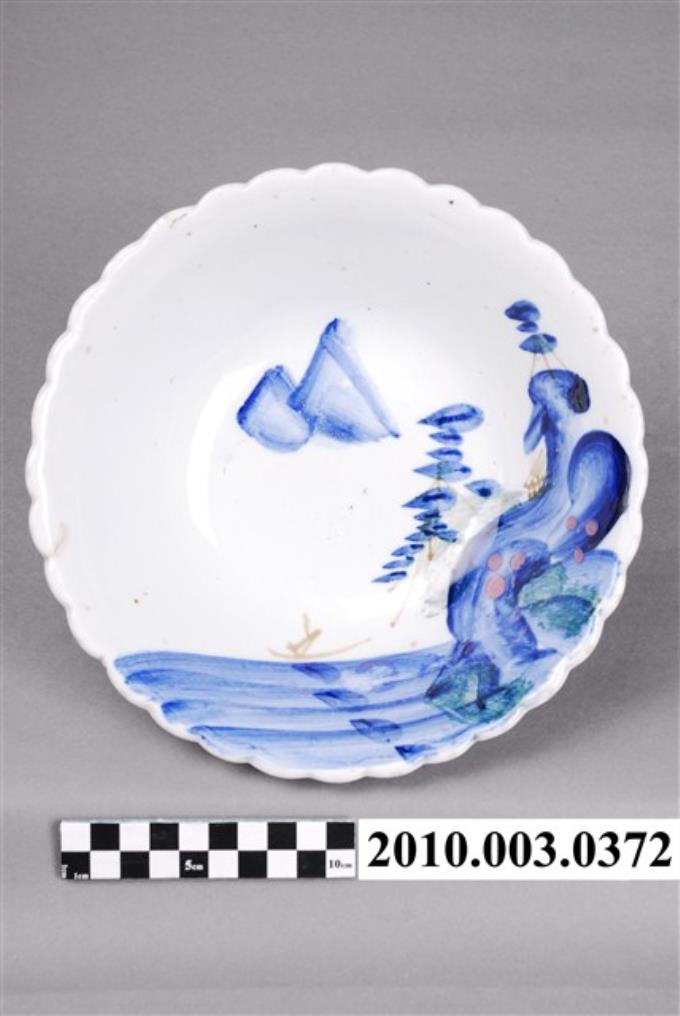 手繪白瓷南洋景緻花形碗