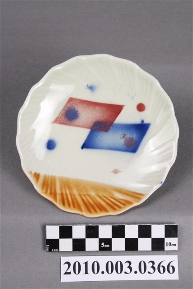 噴繪醬釉幾何紋花口碟