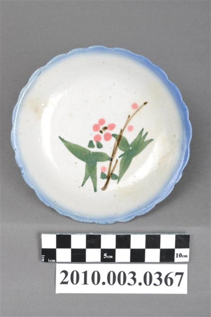 手繪粉紅釉花卉紋花口小碟