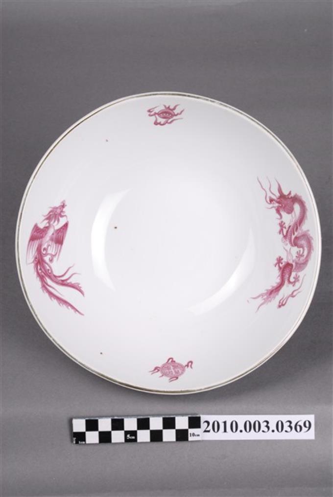 轉印白瓷紅釉龍鳳紋碗