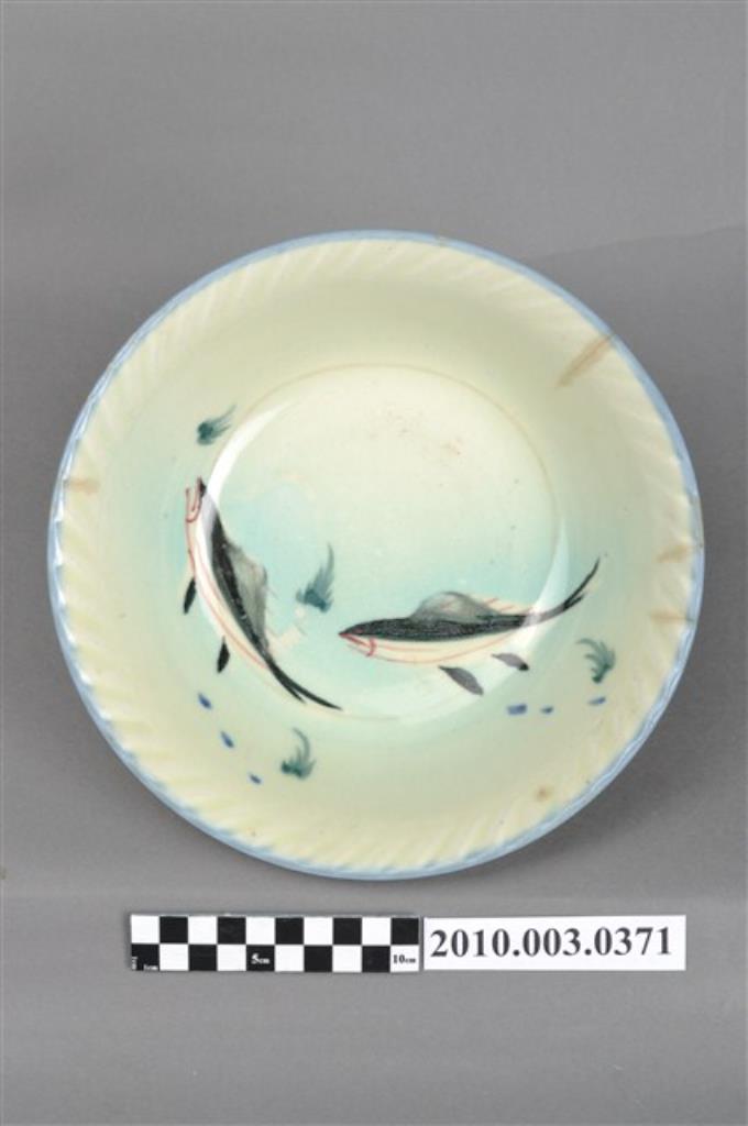 噴繪白瓷彩繪雙魚紋花口碗