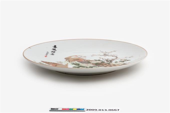 白瓷彩釉印花春風得意孔雀紋圓盤