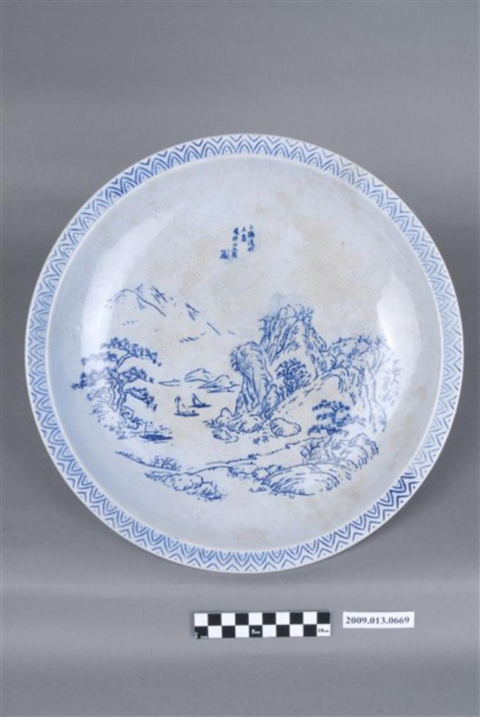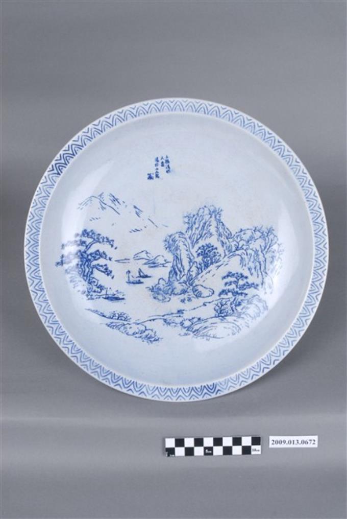 青花印花山水紋盤