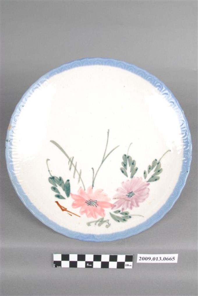 白瓷彩釉印花花卉紋「大同」款圓盤