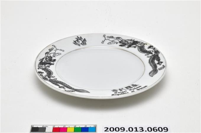 白瓷黑釉印花雙龍搶珠紋圓盤