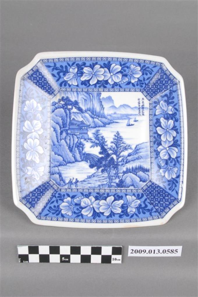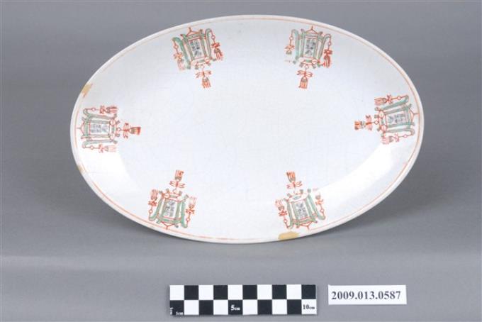 白瓷彩釉印花藤蔓薔薇花紋橢圓盤