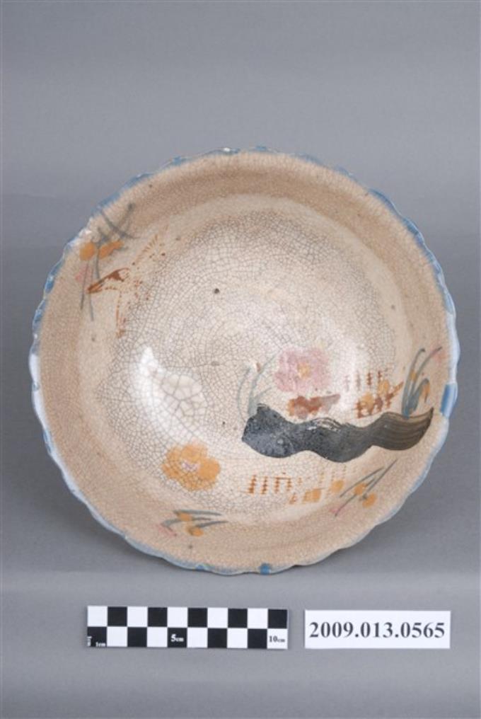 彩繪印花花鳥紋菱花口碗