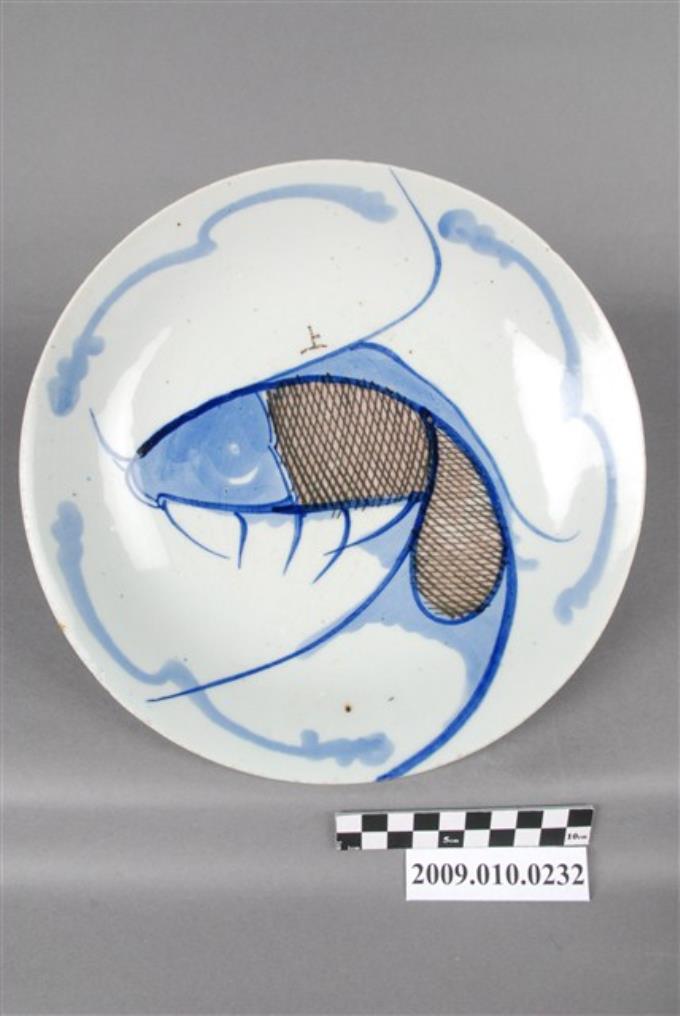 手繪白瓷青花釉裡紅魚紋圓盤