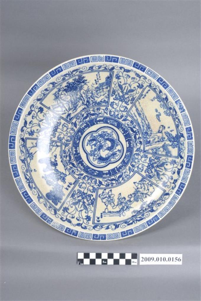 手繪粉紅釉鈷藍魚紋橢圓盤