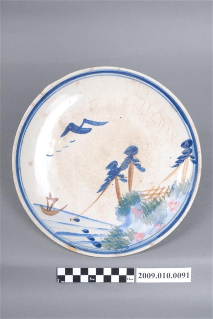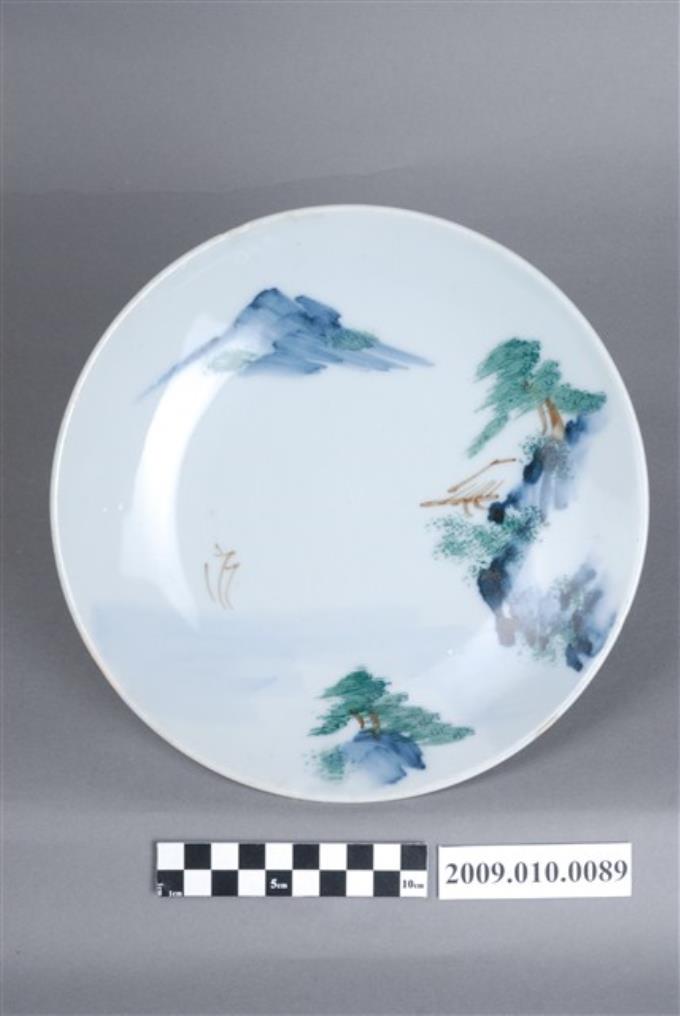 彩繪山水紋圓盤