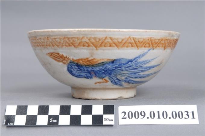 青花赤釉壓印鳳紋碗