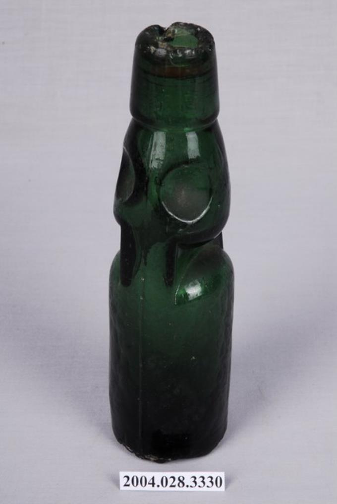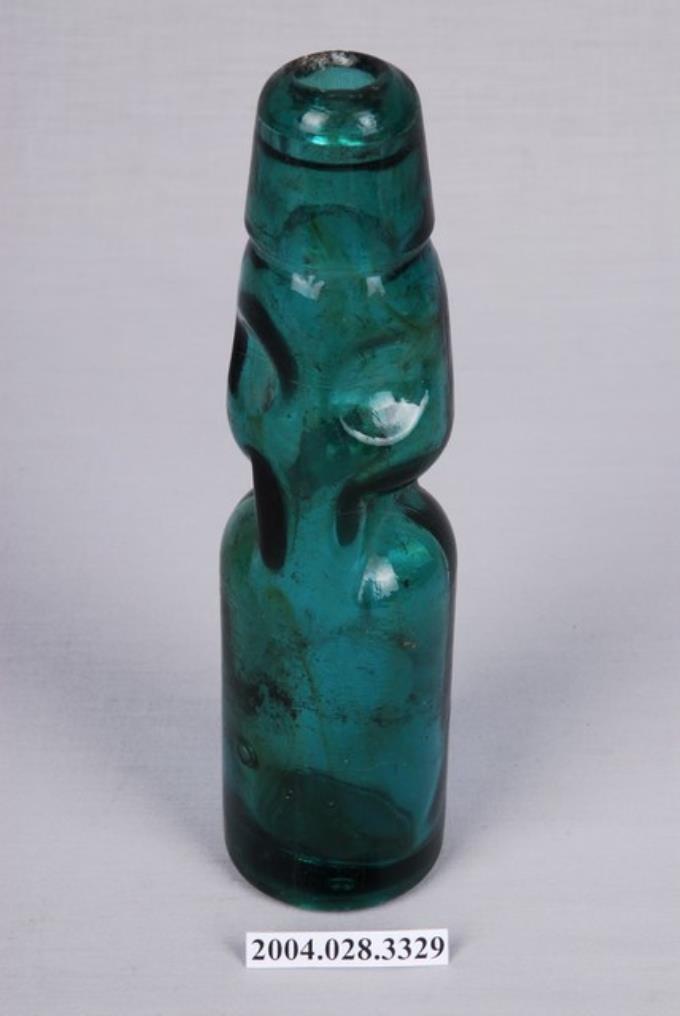 藍綠色圓柱形彈珠汽水玻璃瓶