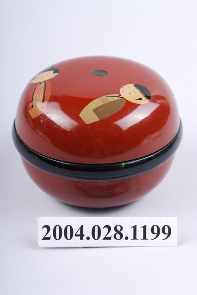 朱黑漆人偶紋圓形含蓋容器