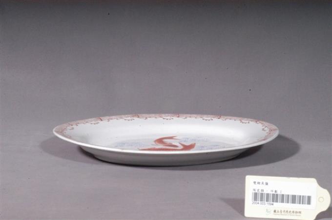 印繪紅釉雙魚紋橢圓盤