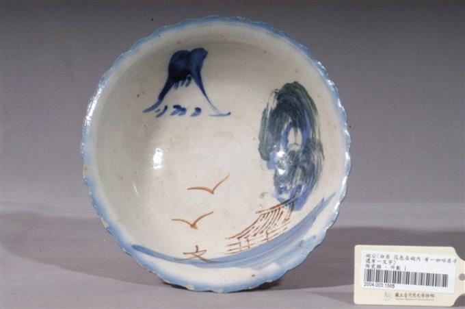 彩繪山水紋花口碗