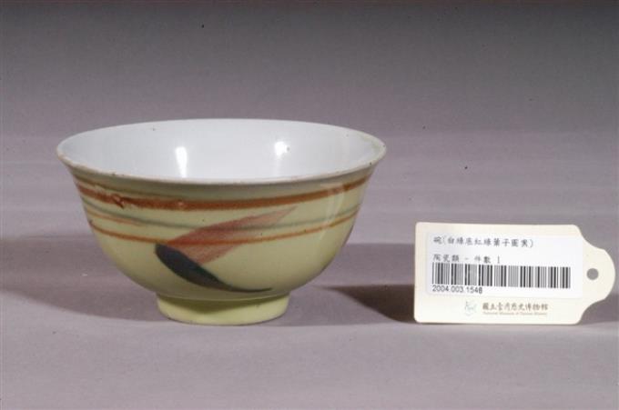 鵝黃地彩繪葉紋碗
