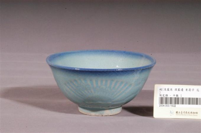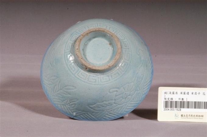 淺藍釉花鳥扇壓紋碗