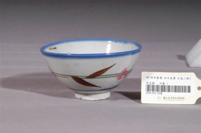 淡藍釉粉紅褐彩葉紋碗