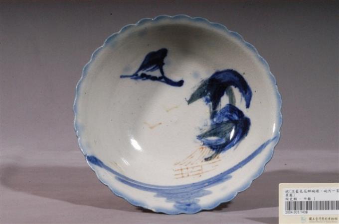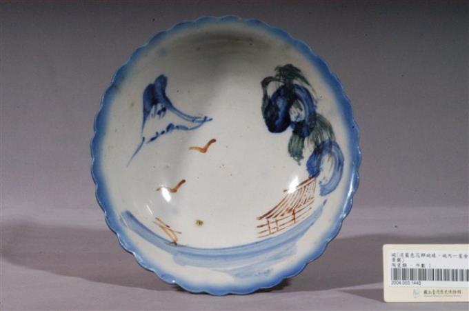 彩繪山水紋花口碗