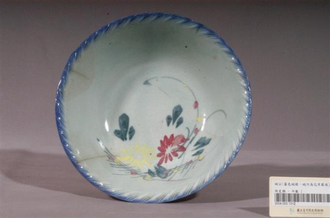 淡藍釉彩繪花卉紋碗公