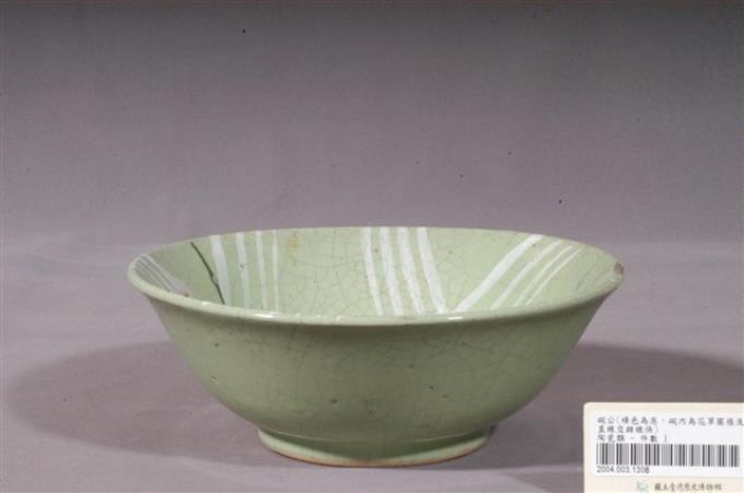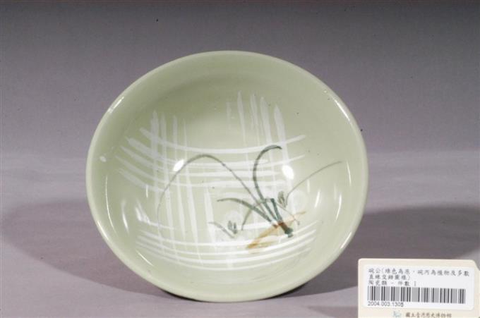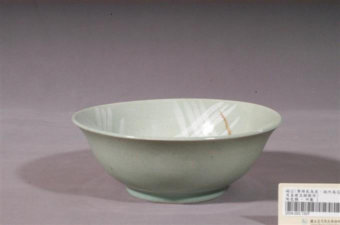 淡綠釉手繪葉紋碗公