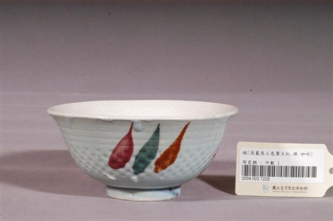 淺藍釉三色葉彩繪紋瓷碗