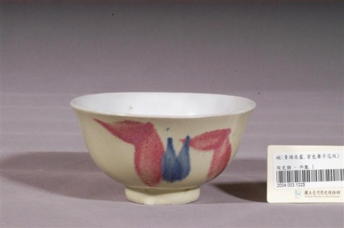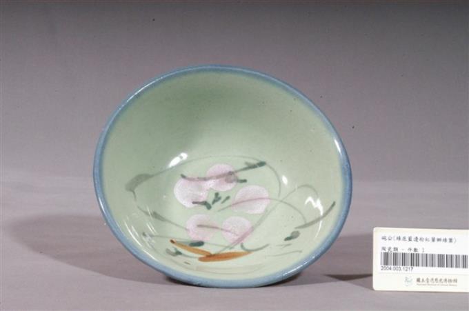 青釉藍邊粉花綠葉彩繪紋瓷碗