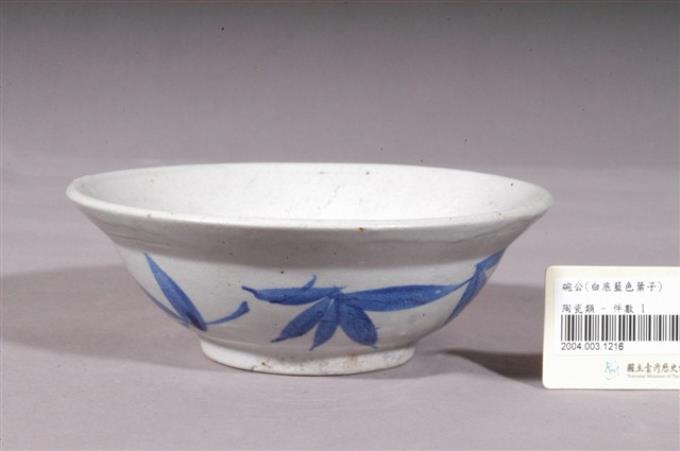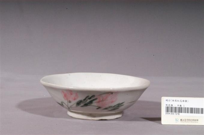 青釉藍邊粉花綠葉彩繪紋瓷碗