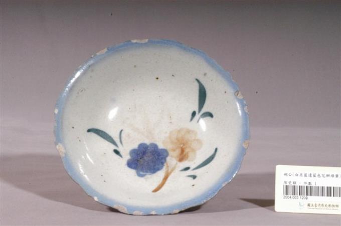 白釉藍邊紅藍花綠葉彩繪紋瓷碗