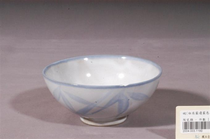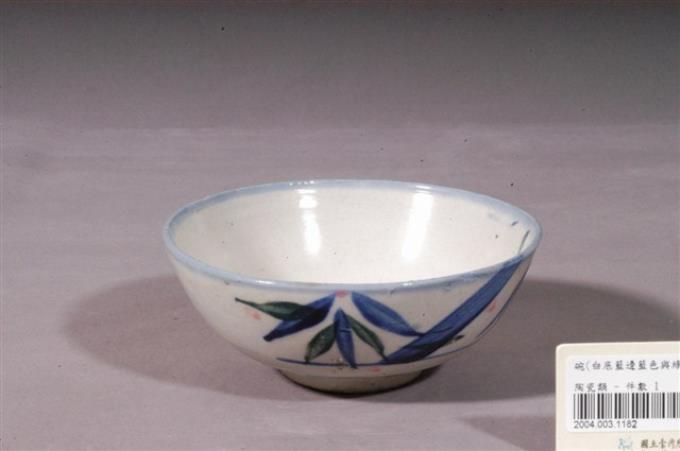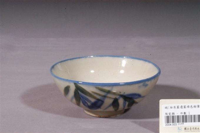 白釉藍邊紅點藍綠葉彩繪紋瓷碗