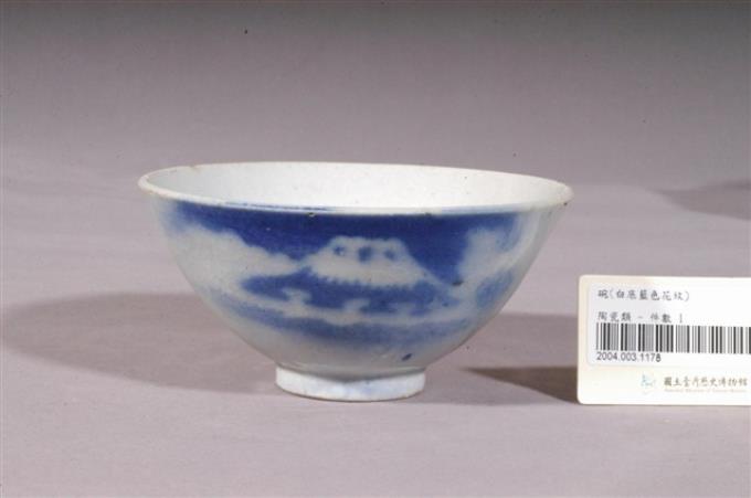 白釉藍紅倒葫蘆噴繪紋瓷碗