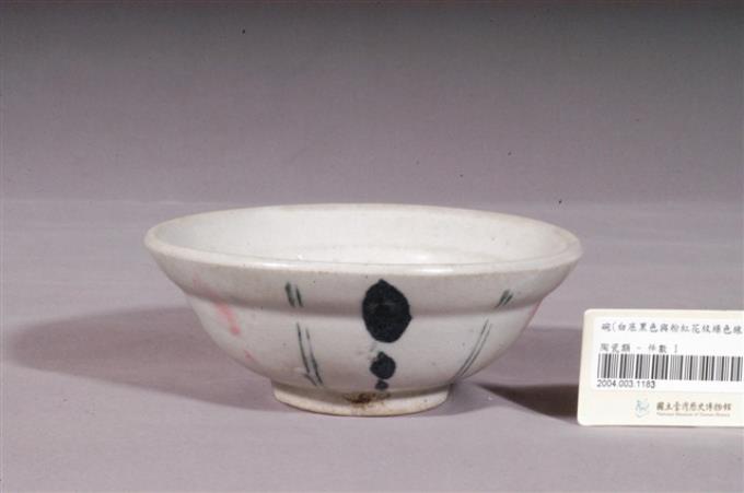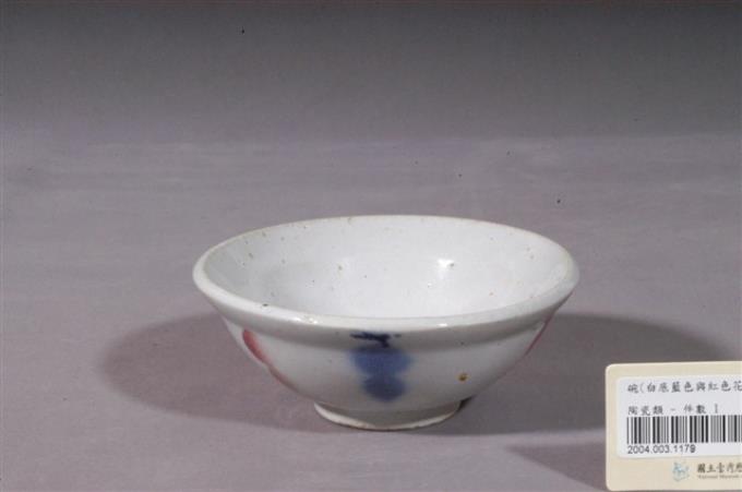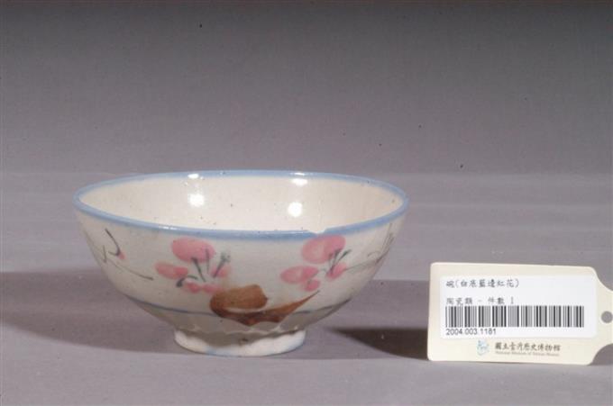 白釉藍邊紅花綠葉彩繪紋瓷碗
