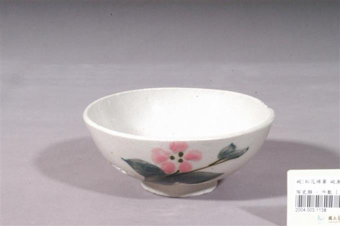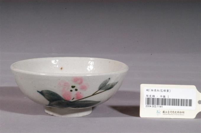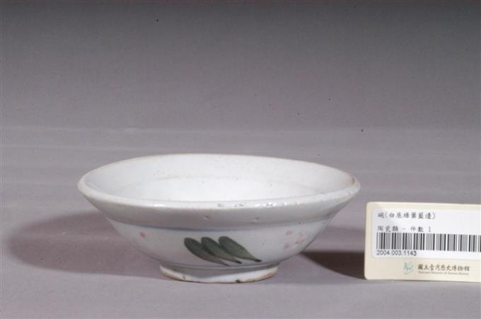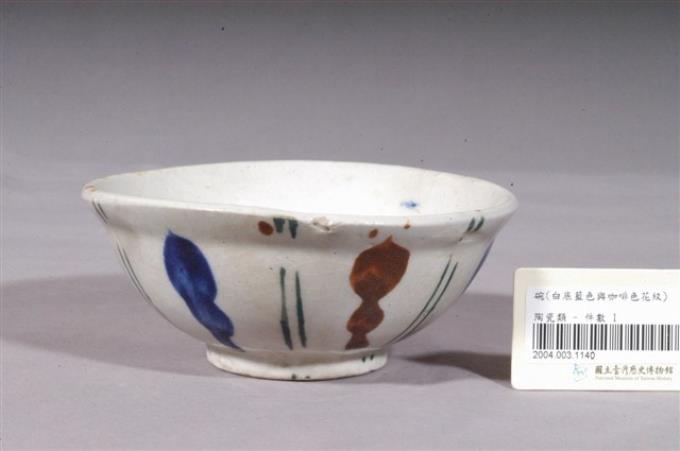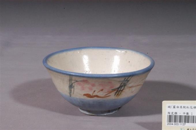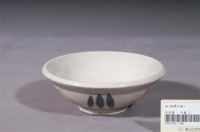 .白釉藍白底紅花綠葉彩繪紋瓷碗