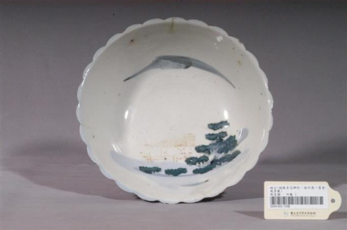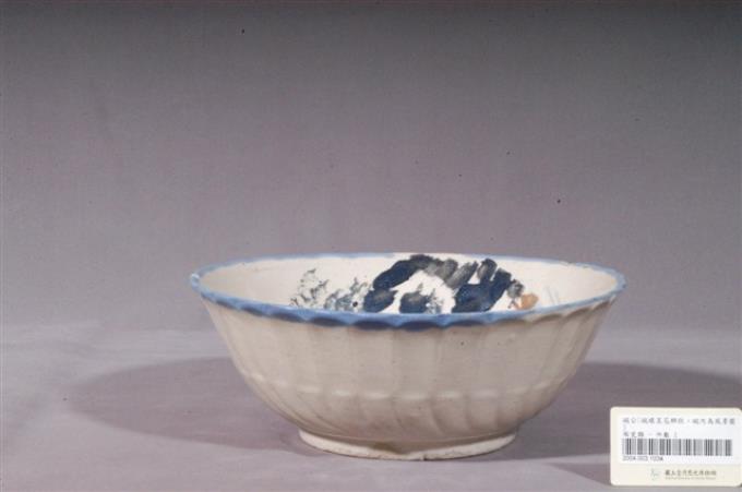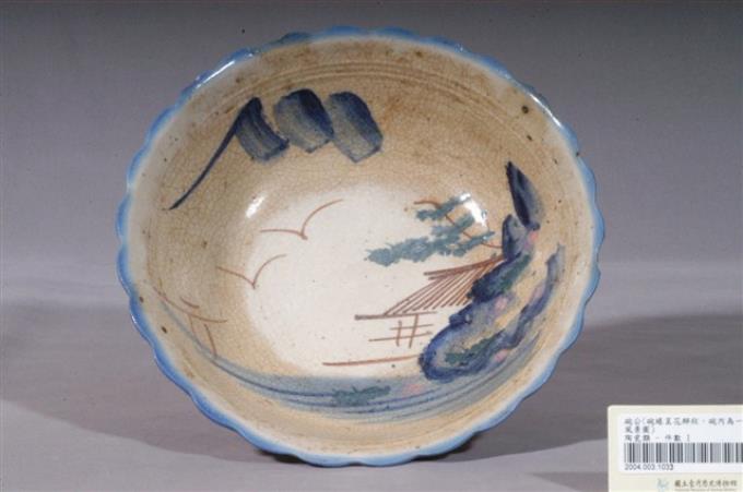 彩繪山水景緻花形碗