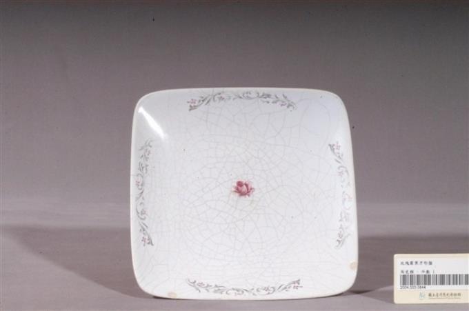 粉紅釉轉印花卉紋方盤