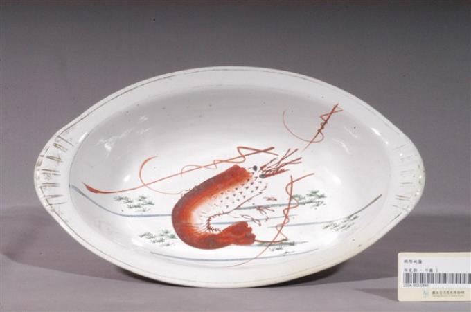 印繪白瓷紅蝦折沿橢圓形盤