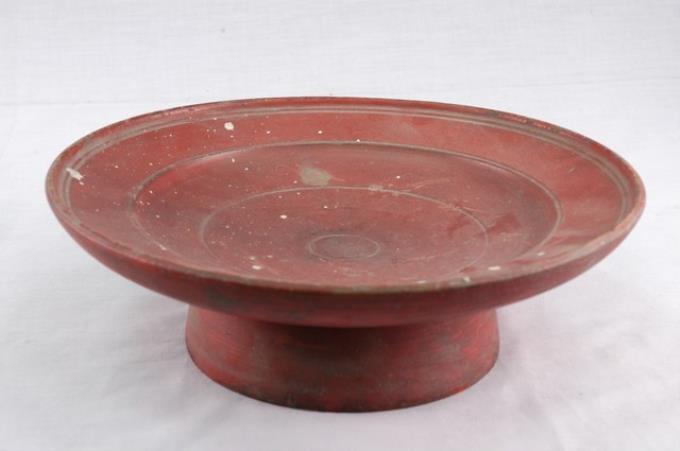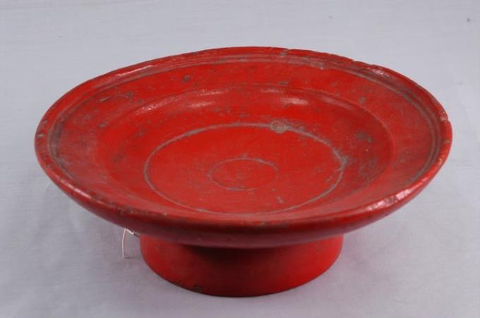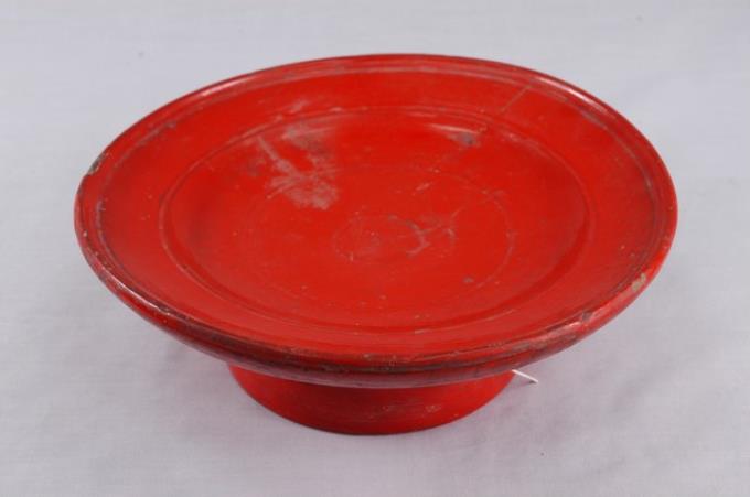 木胎朱紅色漆高腳供盤