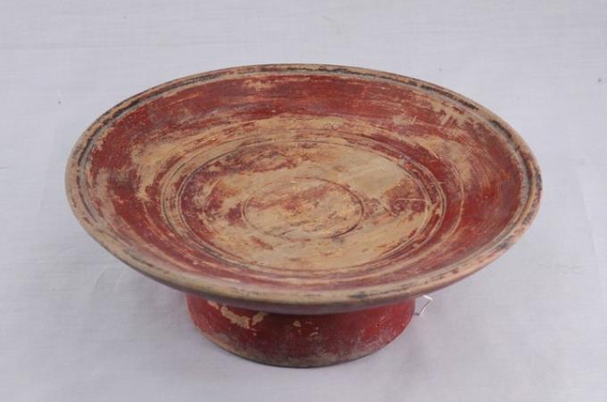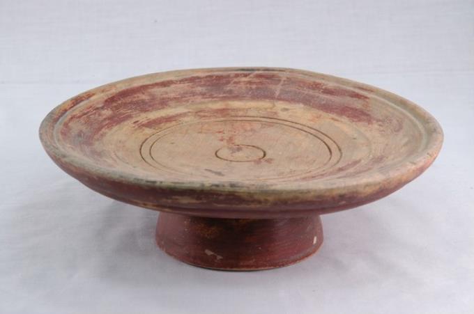 木胎棕紅色漆高腳供盤