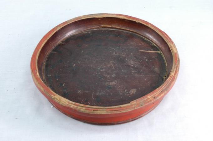 竹製朱紅色漆圓形供果盤