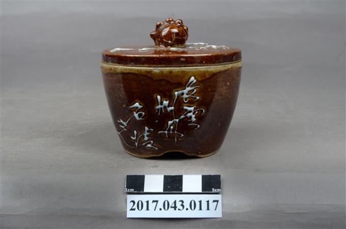 醬釉山水紋蓋罐