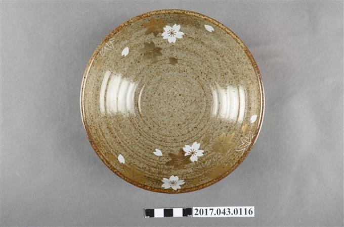 橘吉灰釉褐斑金彩白櫻楓葉紋圓盤