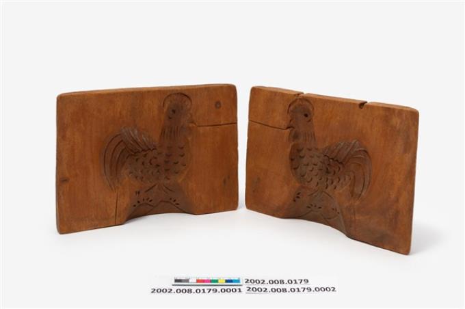 長方形四面雕龜桃連錢魚紋帶柄粿印