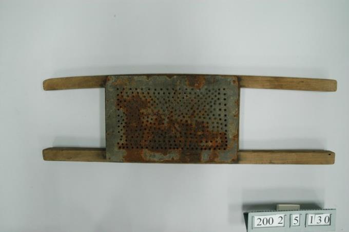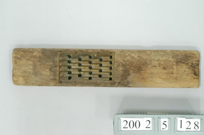 長方形四面雕龜桃連錢魚紋帶柄陶燒粿印