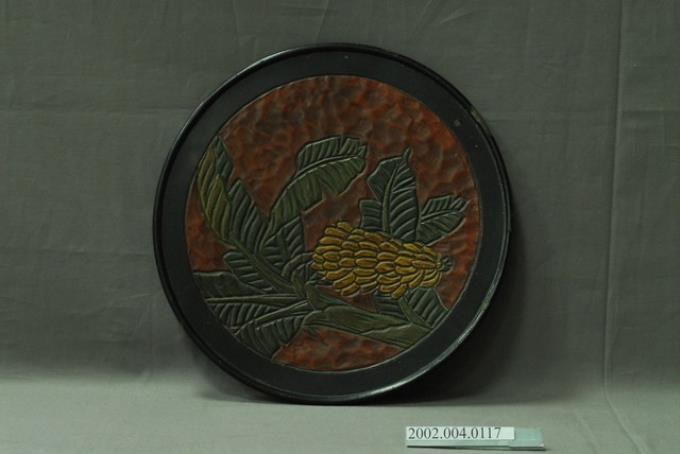 木胎雕刻彩繪磨顯香蕉在欉黃蓬萊塗圓型盤