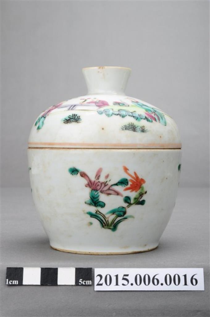 粉彩梅蘭菊竹與人物紋蓋罐