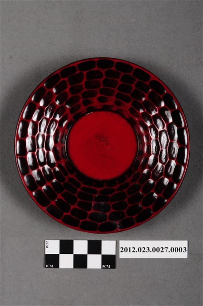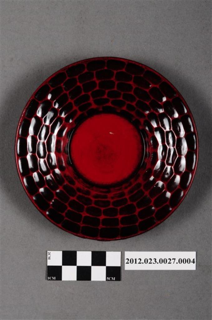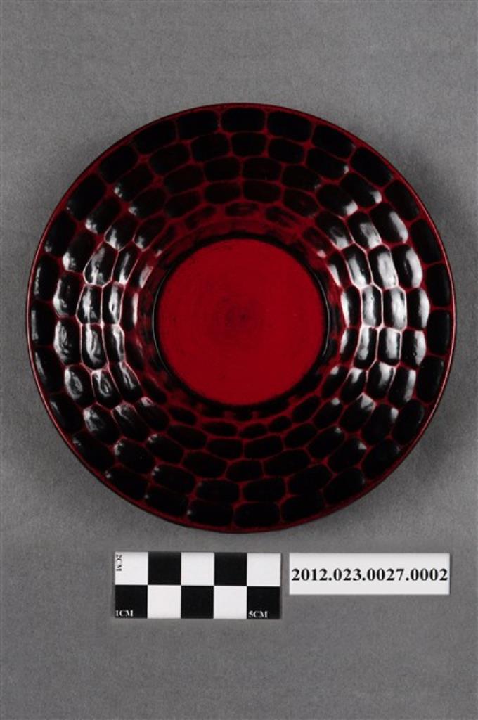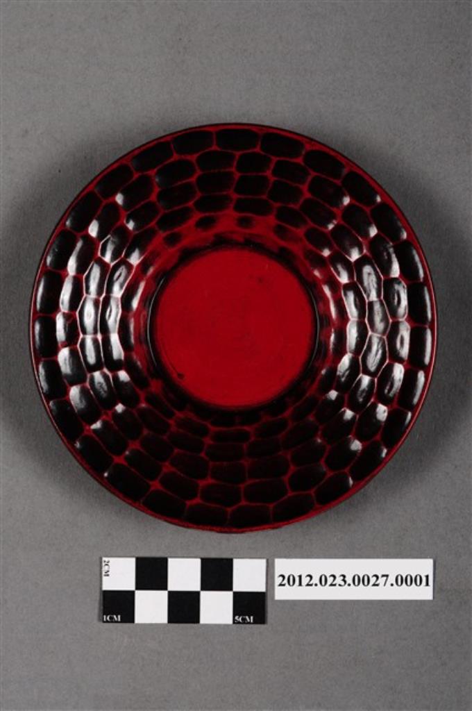 朱漆長方形四面雕龜魚方勝元寶彎錠紋帶柄粿糕印