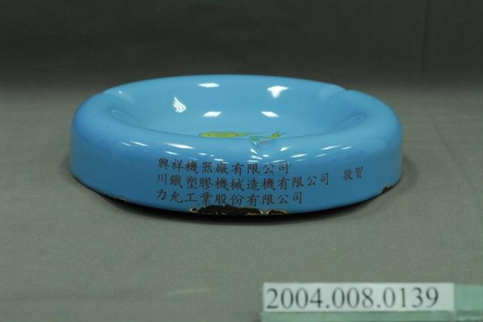 永力塑膠廠開業10週年紀念藍色搪瓷菸灰缸