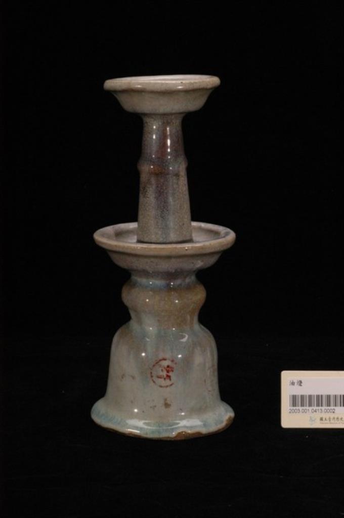 灰青釉冰裂紋燭臺