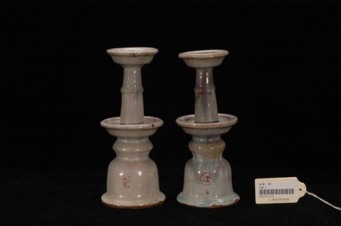 灰青釉冰裂紋燭臺組
